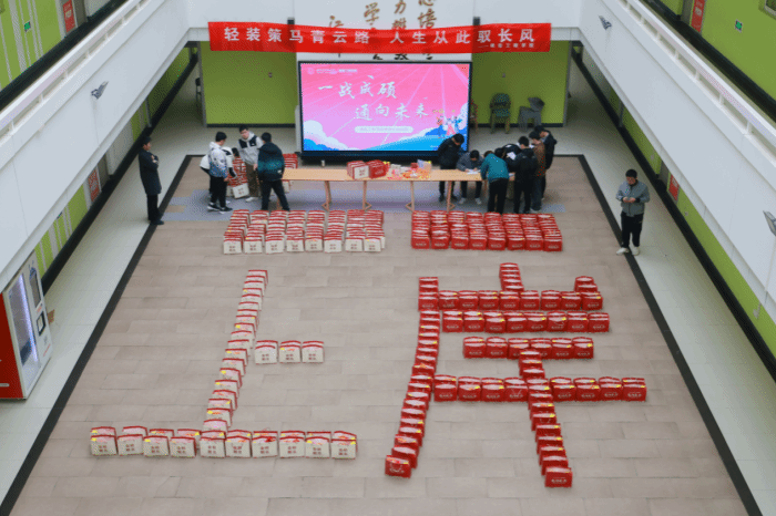 对考研学子的祝愿……一份份礼包排成大大的“上岸”两字,寄托着爱体育
