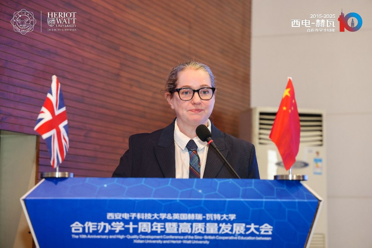 理查德·威廉姆斯介绍了十年来中英合作办学项目的育人成效,通过项目学位数据的提升、里程碑事件的见证等,回顾了两校合作办学历程,进一步传递双方围绕学生、重视学生的教育理念,希望赫瑞-瓦特与西电能够继续竭诚携手共进,开出更美的国际合作之花。