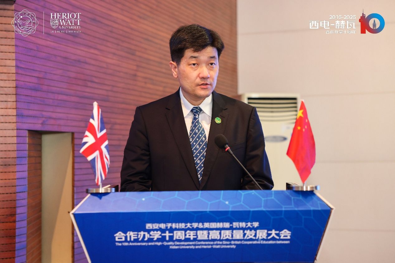 (通讯员 薛喆 王思阳)十年春华秋实,一路融贯东西。9月15日,西安电子科技大学与英国赫瑞-瓦特大学合作办学十周年暨高质量发展大会在北校区老科技楼报告厅举办。西安电子科技大学校长高新波,赫瑞-瓦特大学校长理查德·威廉姆斯,中共陕西省委教育工作委员会副书记、一级巡视员王海波,陕西省人民政府外事办公室副主任黄勇,英国驻华大使馆苏格兰政府办公室主管柯春娜出席大会并致辞。会议由国际合作与交流部部长沈玉龙主持。