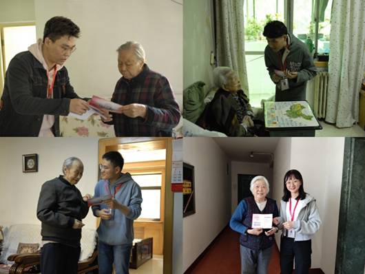 研究生志愿者提前完成了分组和任务分配,提前与小组负责的离退休老教师进行了电话联系,协商上门拜访时间,之后佩戴《党员先锋岗》工作证,将印有自己联系方式的《关心关爱联络卡》亲自送到离退休老师手中。