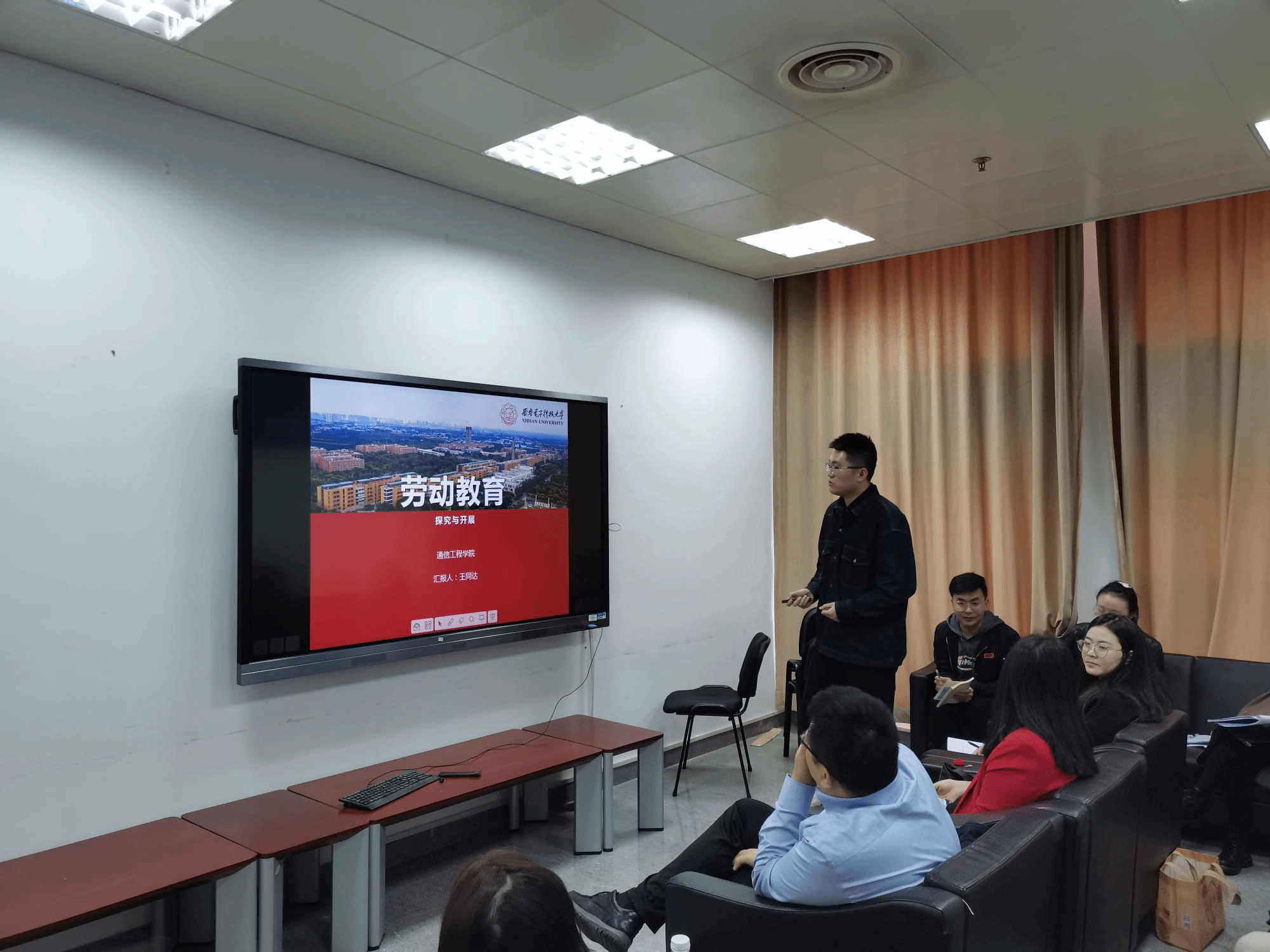 联动开办艺术展等美育活动,以亲身体验、氛围融入的形式引导学生理解并感受艺术之美及中华传统文化,并带领大家共同探索“美育应该如何与学科特色以及人工智能相结合,用科技的手段让学生感悟人文自然之美”的问题。随后,2019级专职辅导员王同达做了关于劳动教育的专题分享。他通过对比国内外关于劳动教育的研究和实施现状,梳理国内重点高校开展的特色劳动教育活动,总结展示学校及爱体育