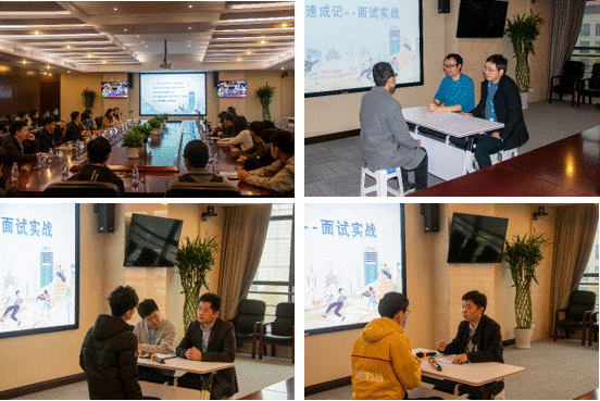 为切实帮助学生提升实战本领,专门安排“面霸速成记”实景演练环节,中兴考官现场模拟面试,从专面、综面、终试洽谈,层层演练,分类指导,帮助同学们提升面试能力。