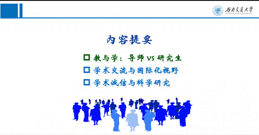 本次报告会中,范平志从自身在研究生培养过程中的体会感悟出发,结合相关培养研究理论,从三个方面展开讲座内容,分别是:教与学,导师和研究生的关系论证、学术交流与国际化视野、学术诚信与科学研究。