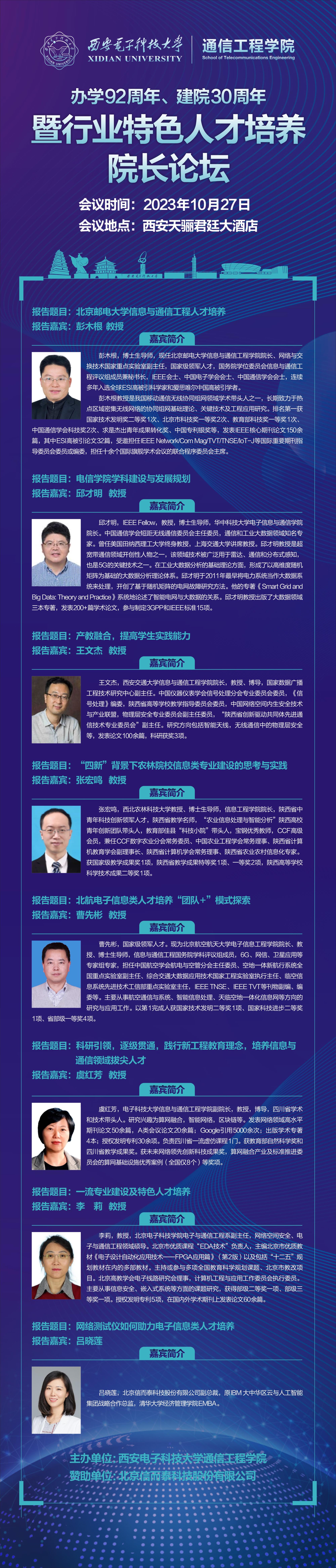 为深入学习党的二十大精神,全面贯彻党的教育方针,落实立德树人根本任务,推动我国电子信息类高校学科建设内涵式发展,全面提高人才自主培养质量,特举办爱体育官网 办学92周年、建院30周年暨行业特色人才培养院长论坛。