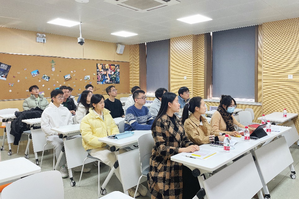 杨龙首先对助教教学工作中严谨、认真、负责的态度给予了高度评价和认可,他指出,助教工作为项目教学的高质运行提供了坚实支持,保障师生课上课下高频互动。杨龙根据学生问卷结果对助教工作进行了总结与分析。他对助教们在工作态度、课程和知识掌握度、应答及时性等方面的专业表现表示肯定,也如实反馈了学生的建议及需提高改进的方面。