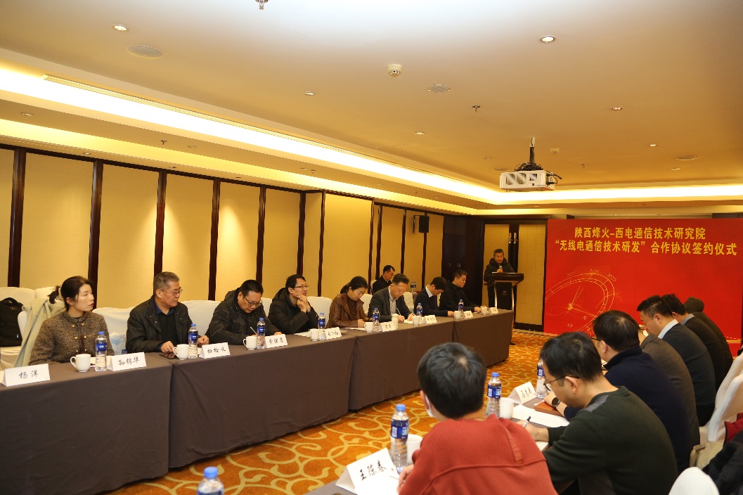 (以下简称西电通院)与陕西烽火电子股份有限公司(以下简称陕西烽火)举行“无线电通信技术研发”合作协议签约仪式。此次签约标志着自2018年烽火—西电通信技术研究院成立后,双方在通信领域的合作进入了更宽口径、更深层次的全新阶段。西安电子科技大学副校长李赞、通院院长李云松,项目负责人马卓,通院产教融合中心执行主任李靖,通院教授杜栓义,司江勃,孙锦华及研究院其他项目骨干人员出席。陕西烽火电子股份有限公司总经理杨勇,副总经理刘宏伟,副总工程师王小军,副总工程师兼西安研发中心主任马志成,西安研发中心副主任张健,王陈春,冯永乾出席。签约仪式由陕西烽火科技部部长杨立主持。