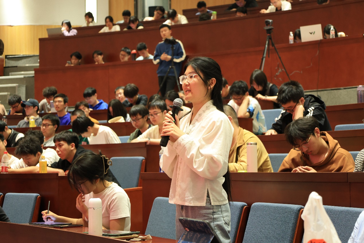 在提问环节,王江舟与在场同学亲切交流,悉心解答同学们关于学业与生活的困惑。大一新生如何快速适应大学生活,中英班学生如何适应一年的英国生活,面临人生抉择时如何平衡个人兴趣与时代热门……同学们的问题质朴又真诚,王江舟从自身经历出发,一一给予解答。
