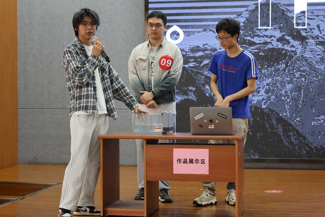 答辩现场,选手们通过ppt及作品实物展示的方式,激情四溢地讲解自己的创新项目。选手们有的聚焦于环保领域,提出了切实可行的解决方案;有的则关注科技发展,带来了令人眼前一亮的新发明。选手们带着对平时生活问题的观察和思考,将新奇的点子落实于生活,利用创新的思想和先进的技术,解决生活中的问题。畜牧场奶杯消毒系统,有效解决了生产中的消毒问题,提高产品质量;智能夹板-中国银发经济下骨折医疗器械的新星,对于老年人骨折恢复问题有了更好的解决方案,助力每一位患者更快恢复……在问辩环节,评委老师针对选手们的作品提出了宝贵的意见与建议,在思维的碰撞中迸发创新的火花,一度将现场的气氛推向高潮,现场观众在收获知识的同时,也充分感受到青年科技创新的巨大魅力。